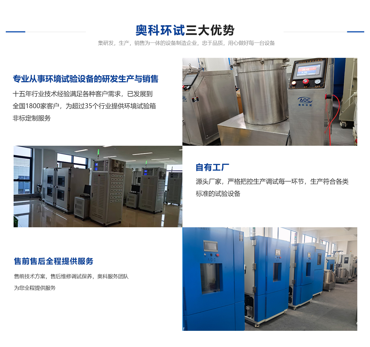 安徽奧科試驗(yàn)設(shè)備有限公司隸屬于杭州奧科環(huán)境試驗(yàn)設(shè)備有限公司直屬分公司,是一家從事各種試驗(yàn)設(shè)備研發(fā)、生產(chǎn)與銷售一體的技術(shù)單位??偣緭碛袕?qiáng)大的技術(shù)團(tuán)隊(duì)及科學(xué)嚴(yán)謹(jǐn)?shù)纳a(chǎn)流程,鑄就了產(chǎn)品質(zhì)量。公司本著“以質(zhì)量求生存,以信譽(yù)求發(fā)展”的原則,為科研、軍事、航空、電子、汽車、石油、化工、醫(yī)療、通訊等各大院校和企事業(yè)單位提供符合GB、GJB、IEO、ISO、ASTM、MIL、DIN等標(biāo)準(zhǔn)的各類環(huán)境試驗(yàn)設(shè)備,并可根據(jù)用戶的需求設(shè)計(jì)制造各類非標(biāo)性設(shè)備。奧科奉行“進(jìn)取求實(shí)嚴(yán)謹(jǐn)團(tuán)結(jié)”的方針,不斷開拓創(chuàng)新,以技術(shù)為核心、視質(zhì)量為生命、奉用戶為上帝,竭誠為您提供高性價(jià)比的自控產(chǎn)品及無微不至的售后服務(wù)。